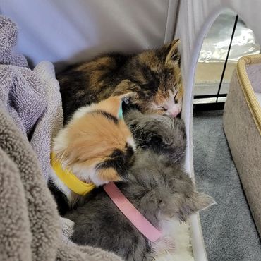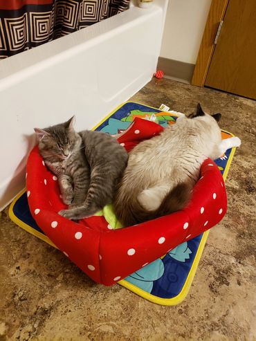 Each visit includes: Letting the dogs outside, feeding and filling-up water, cleaning the litter box, and play time! Each additional cat is $3 and each additional dog is $5.